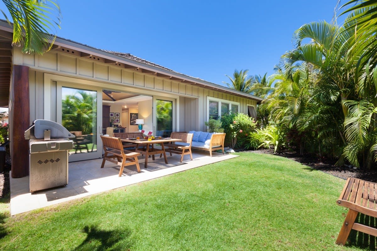 This immaculate fully detached single level home in KaMilo, is being sold fully turn-key. Rarely offered detached floor plan with dual master bedrooms. It is extremely well equipped so you can just show up with your clothes and a toothbrush. KaMilo 418 "Harmony Villa" is STVR registered and is one of most successful 3BR rentals in KaMilo. The home has a large number of upgrades including stunning Cumaru hardwood in all bedrooms, and travertine throughout remainder of home, upgraded beverage/wine cente high-end energy efficient ceiling fans, upgraded appliances including GE Monogram fridge and larger capacity washer/dryer. Home includes leased photo-Voltaic (solar) with "net-metering" The furnishings are much higher end than typically found in a home at this price including; Brazilian IPE hardwood lanai furniture, teak day bed, living room with sleeper sofa and sleeper oversized chair. The outdoor lanai includes a private BBQ grill. Especially attractive to owners and renters alike, is the garage with epoxied floors and garage organizers stocked with bikes and beach gear. Enjoy the KaMilo recreation complex with large family pool, quiet 50' lap pool, spas and fitness center. As an owner in Mauna Lani enjoy the owner’s beach club privileges. Mauna Lani Ohana program for deep golf discounts on 2 world class courses. The Low HOA maintenance dues with this model include 400Mbps Internet, Cable TV and water. Enjoy the walk or bike ride to Mauna Lani Shops with groceries, restaurants and shops. Mauna Lani Resort homeowners have discount privileges for Mauna Lani golf with Ohana Program. Sold furnished per inventory. Existing vacation rental bookings in 2021 must be honored. Popular vacation rental with rental history and future booking info available on request. Don’t miss the link to the Matterport 3D virtual tour. Showings only possible Sat July 3rd PM & 4th and July 12th/13th.